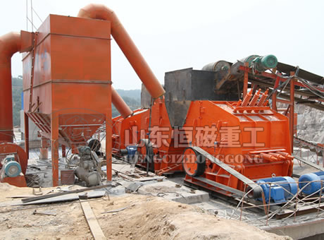 石料由振動給料機均勻的送到顎式破碎機進行粗破,粗破後的物料送進細顎式破碎機進行再次破碎,破碎後的物料由膠帶輸送機送進振動篩進行篩分,滿足製砂機進料顆度的石子進製砂機進行製砂,不滿足要求的返回細顎式破碎機重新破碎,從製砂機出來的料物,返回到振動篩重新進行篩分,篩分出的滿足要求的砂子,進入洗砂機清洗,清洗後由成品輸送帶輸送即為成品,不滿足要求的砂石混合物料,送入製砂機進行再次破碎,本生產線最終形成2斷閉路循環,根據用戶的需要還可以進行多種配置。