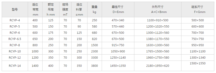 應用範圍: 輸料皮帶窄,物料薄,含雜鐵少的場合