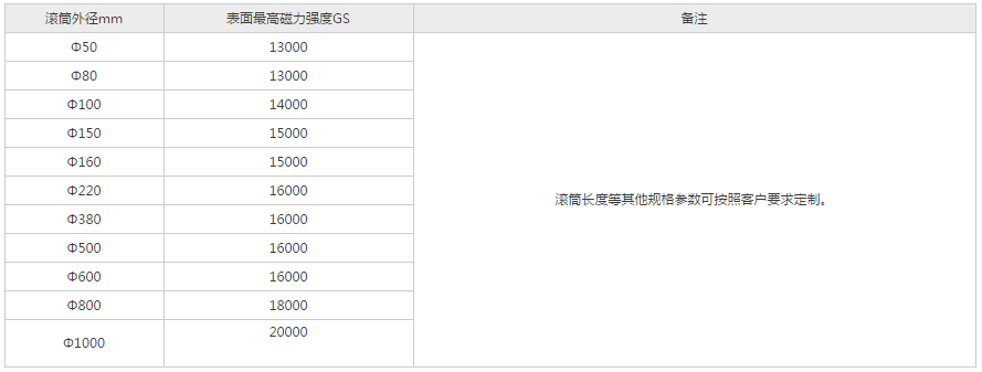 低能耗、結構簡單、使用方便、除鐵更幹淨,效果更顯著。本品采用合金釹鐵硼作為磁源,並采用特殊的製作方法製作而成。磁力強勁,使用壽命長,規格樣式可按照客戶使用要求及現場情況任意更改定製。適用於除鐵要求更嚴格、除鐵量更大的場合。
