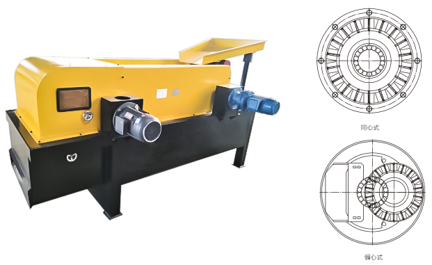 有色金屬渦流分離機由分選機主體和控製櫃兩部分組成;主體部分主要包括選總成、驅動電機、機架及罩體等部分構成。分選總成為設備核心部件,由永磁滾筒、物料輸送係統(包括物料輸送帶、輸送帶驅動滾筒及減速電機)組成。