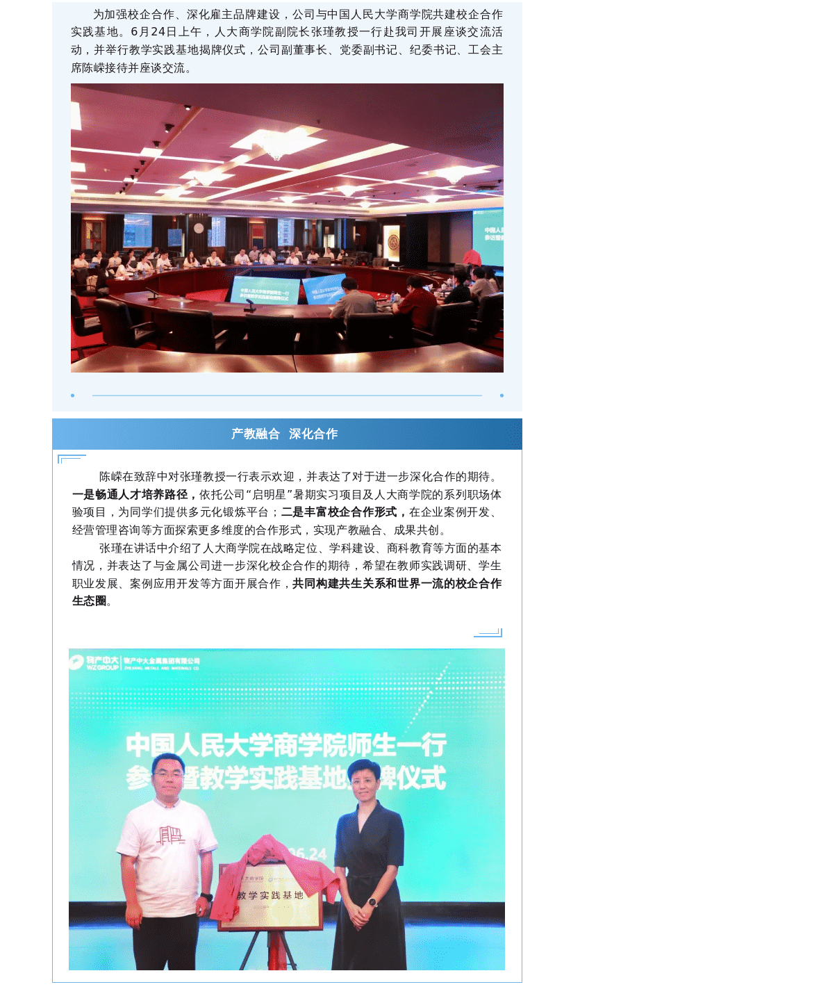 校企合作 | 物產(chǎn)中大金屬與人大商學(xué)院共建教學(xué)實(shí)踐基地